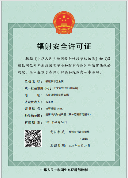 柳州市行政审批局关于2026年3月23日-2026年3月27日排污许可、辐射安全许可信息的公告