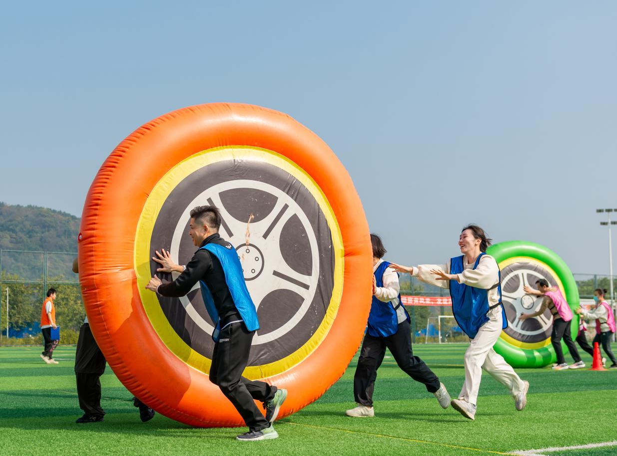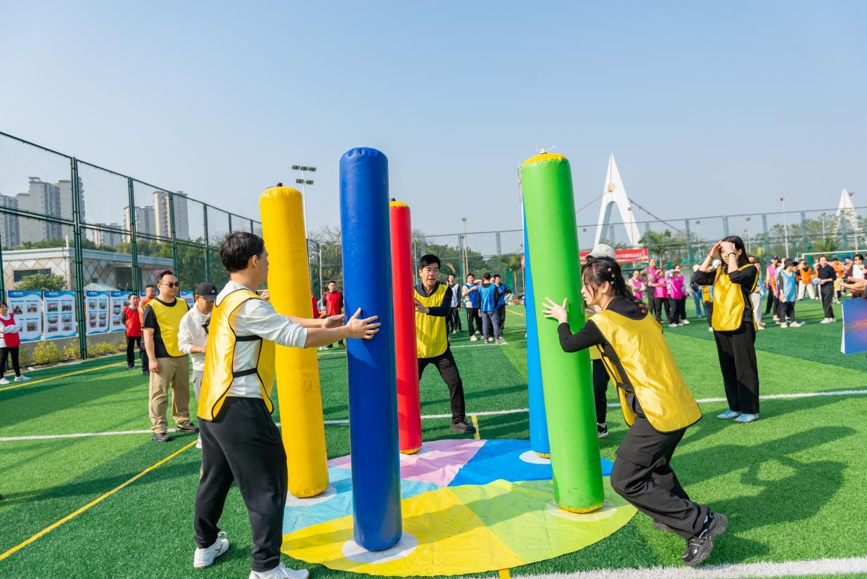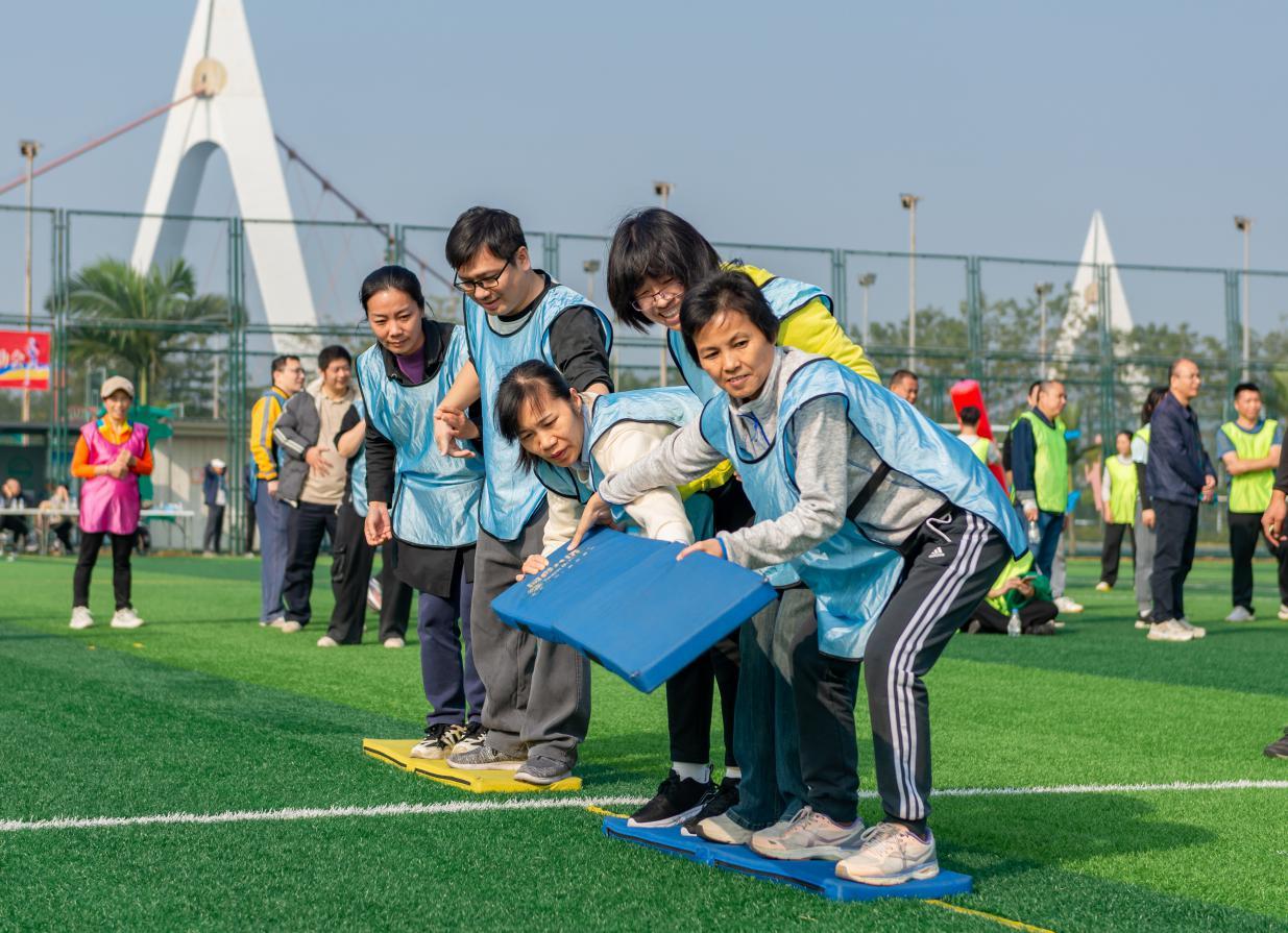 随着嘹亮的信号声响起,比赛正式开启。本次运动会巧妙地将市行政审批局十年奋斗历程融入到五个精心设计的趣味项目中,寓教于乐,寓意深远。从象征初创时期凝心聚力的“合力筑基石”,到寓意流程优化顺畅高效的“畅通流水线”;从体现攻坚克难、同舟共济的“勇闯障碍赛”,到代表效率飞跃、精准衔接的“极速审批圈”;最后到象征事业薪火相传、硕果累累的“丰收接力跑”。每一个项目不仅是对体能与协作的考验,更是对十年奋斗精神的一次生动再现与集体重温。赛场上,加油声、欢笑声、喝彩声此起彼伏。队员们全情投入,默契配合,在竞技中展现了审批人顽强拼搏、永不言败的斗志,在协作中彰显了团队同心同德、共克时艰的凝聚力。