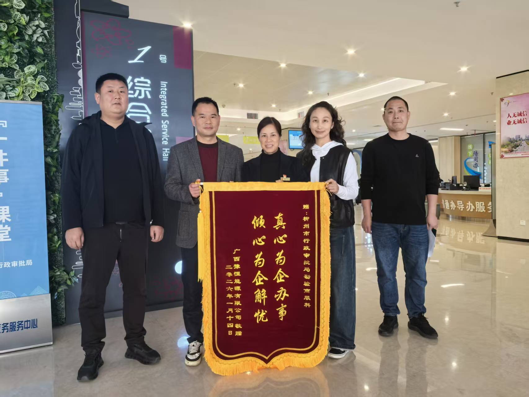 “提交申请第二天就有工作人员来勘验,还提前电话提醒要注意啥,一点不耽误我们接单。过程中,工作人员既讲原则又有温度,实在不知该如何感谢他们......”这是广西豫恒能源公司负责人2026年1月送感谢锦旗时说出的心里话。为提升审批效率,勘验商服科启动“审勘联动”响应机制,即申请人提交材料后当日就有专人对接审批科室,确认材料齐全后立马约定勘验时间;需补正的材料的一次性告知补正内容和方式,避免企业多跑,实现一次上门完成全部核查,整体办理时间较以往压缩30%以上。